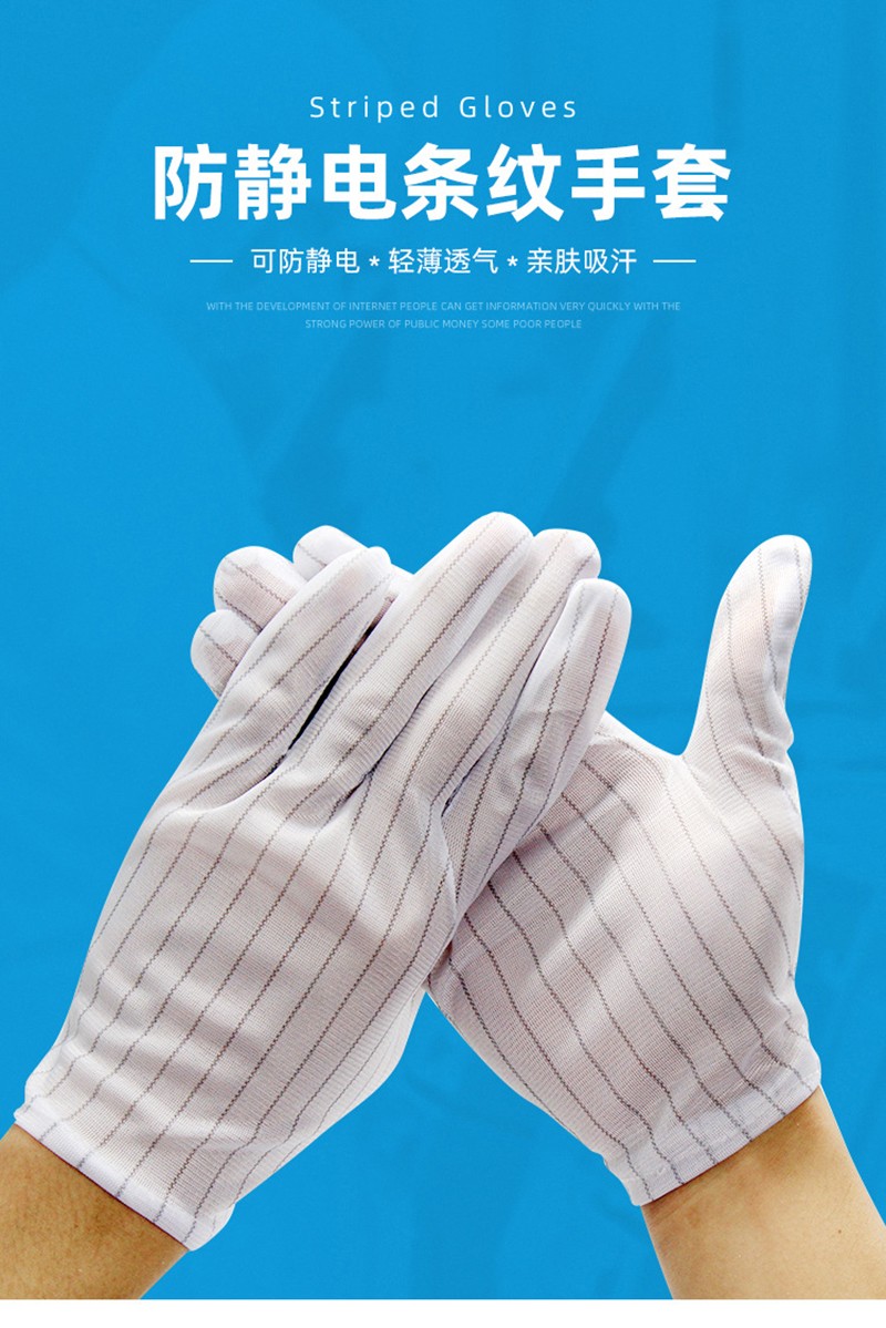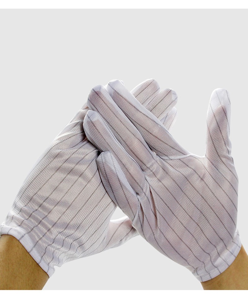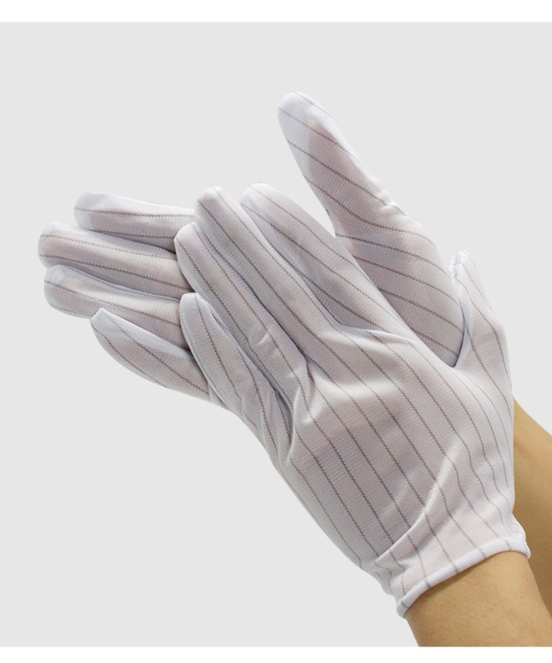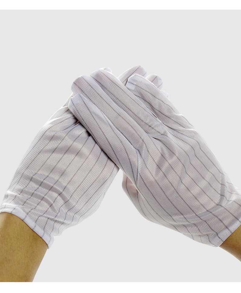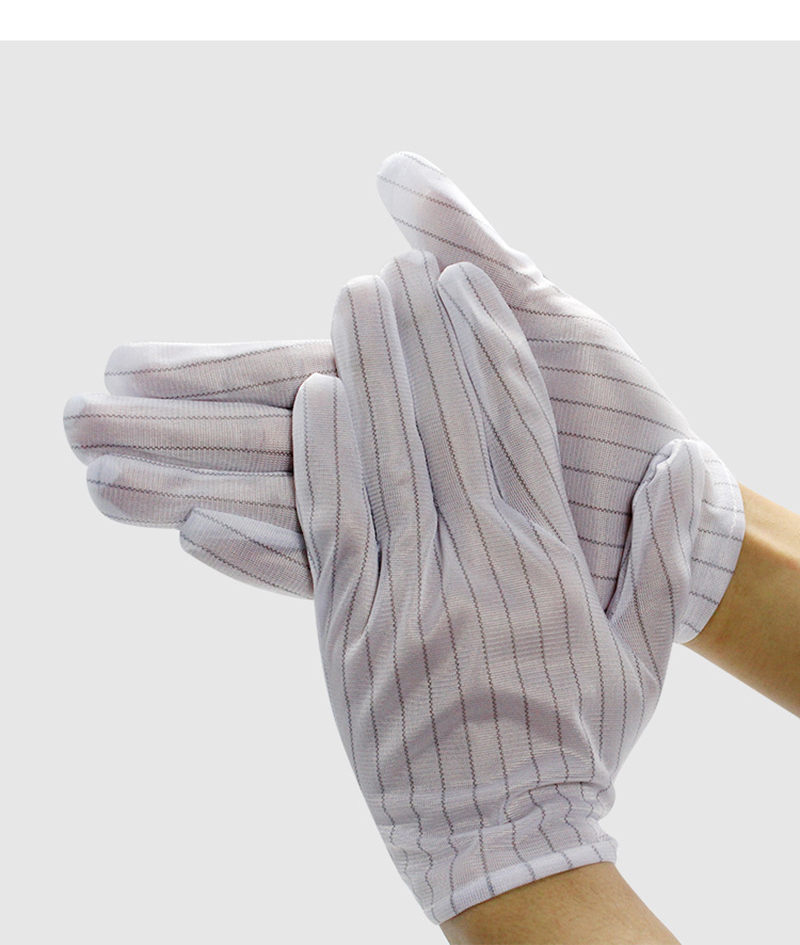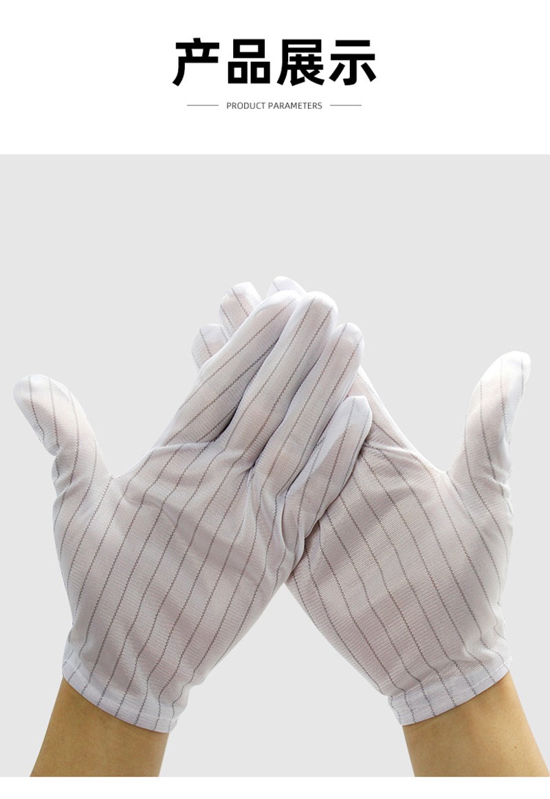Performance: This product is made of high-quality polyester filament and Japanese bell spun conductive yarn, 90g anti-static fabric, with a spacing of 10MM between conductive yarns. The conductive yarns provide low friction voltage and are not easy to generate dust, which can prevent operators from directly connecting their fingers to electrostatic sensitive components. The principle of electrostatic dissipation is used to eliminate static electricity. Wearing appropriate and breathable anti-static gloves is the most economical option;